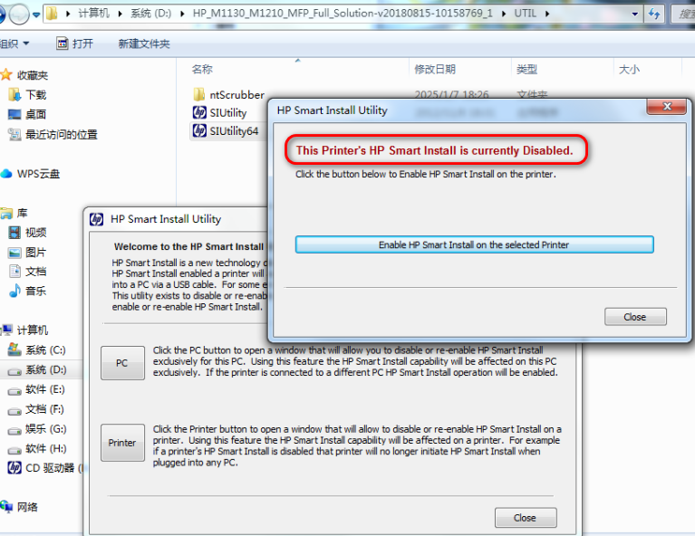 1、在HP智能安装驱动器或者下载的安装包解压后找到UTIL\SIUtility64.exe 文件打开,选择打印机后点击Next;