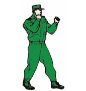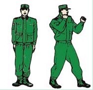 预备姿势:在立正的基础上,听到“擒敌拳预备”的口令,身体左转成格斗势。如下图: