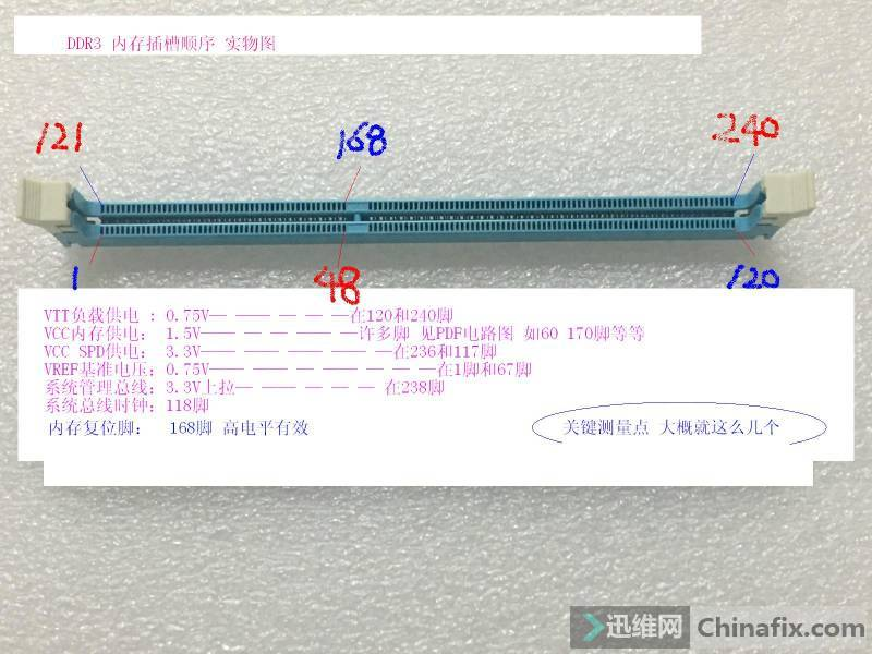 DDR3内存插槽引脚顺序和关键测量点 实物拍摄图