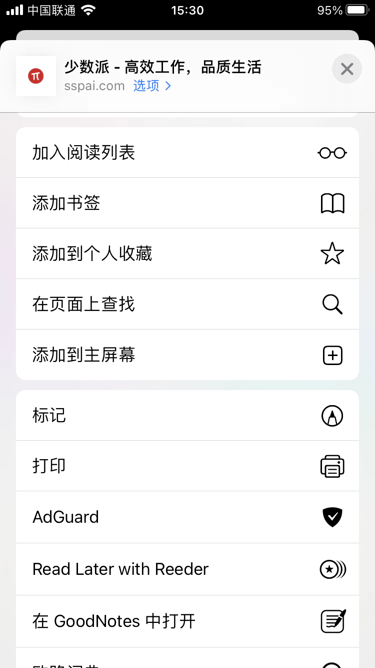 打开 Safari 浏览器后随便打开一个网页,点击分享按钮在弹出的分享菜单中找到「打印」,然后在「打印机选项」中点击「打印机」来选择打印机,如果能够看到刚刚设置好的 AirPrint 打印机就算成功了,选择打印机后输入Windows 账号密码(服务器开了来宾账号可以免密码)就可以实现隔空打印。