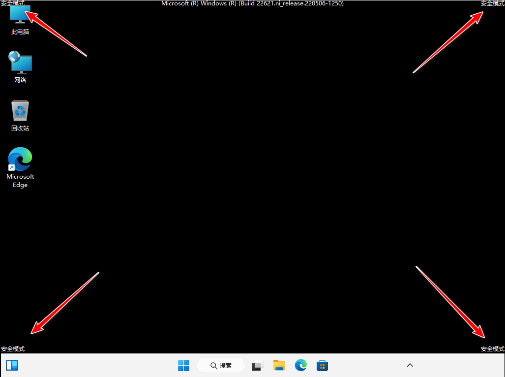 8、成功进入安全模式后,在桌面的四个角上都有“安全模式”四个字显示。